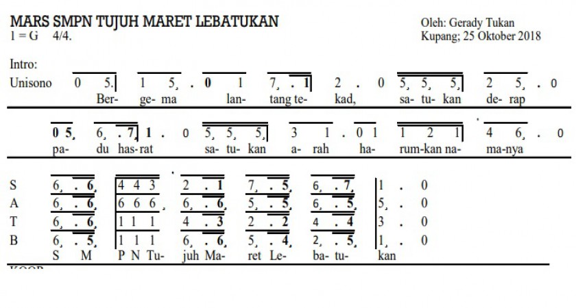 1 = G 4/4. Kupang; 25 Oktober 2018