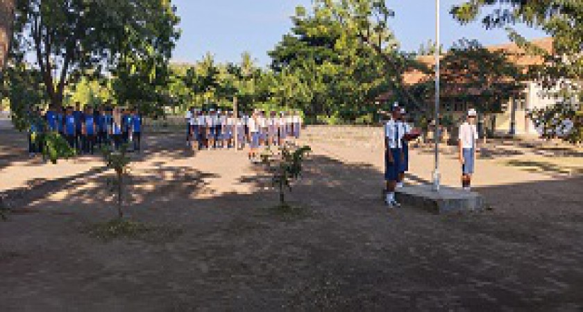 Setelah kegiatan 7 K, upacara bendera dilaksanakan dengan pembina upacara Ibu Paulina Peni Kei, S.Pd dan para petugas upacara dibawakan oleh siswa kelas VIII A. Upacara bendera berlangsung dengan khidmat dan disiplin. Dalam amanatnya ibu Paulina yang dalam akrab disapa Ibu Olin menegaskan tentang pentingnya menjaga keseimbangan antara pemenuhan hak dan pelaksanaan kewajiban dalam hidup sebagai warga negara, khususnya dalam skala paling kecil sebagai warga sekolah. Ada hak-hak yang diterima dan ada juga kewajiban-kewajiban yang harus dipenuhi. Kalau dua-duanya berjalan seimbang maka hidup akan terasa lebih indah.