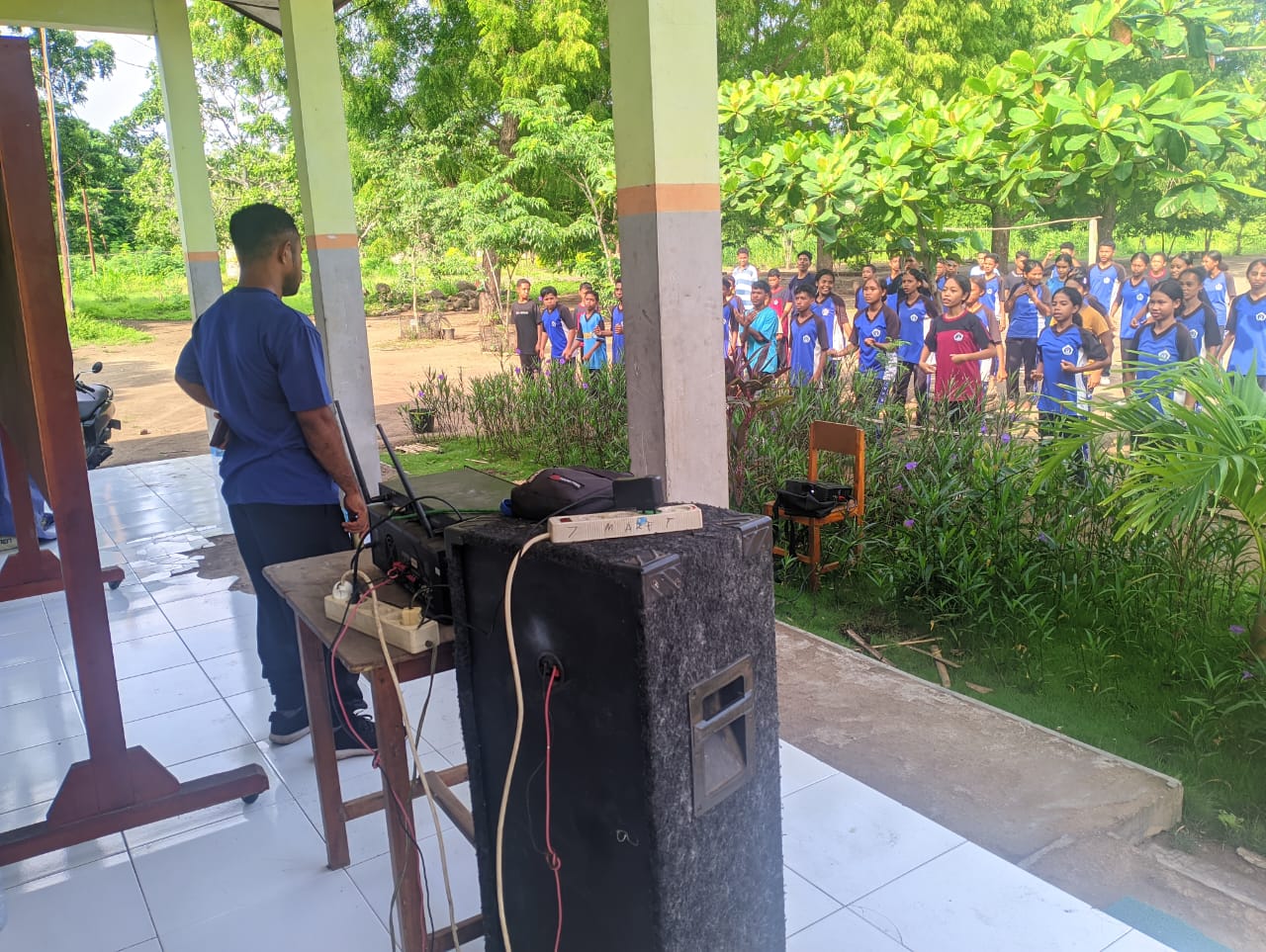 Sabtu 25 Januari 2025 – Setelah melakukan doa pagi bersama, warga SMPN Tujuh Maret Hadakewa kembali menjalankan rutinitas di sekolah. Kegitan awal yang dilakuan yaitu mekakukan kegitan 7K, dilanjutkan dengan Senam Pagi Indonesia Sehat yang di pandu oleh guru PJOK Bpk. Yulius L. Ruing S.Pd , dan di lanjutkan dengan Latihan kor yang juga di pandu oleh guru kesenian Bpk. Yanuarius F. Leu S.Pd juga pembinaan rohani Agama Islam yang yang di bimbing oleh Bpk. Yusuf Arkian S.Pd. Kegitan berlangsung dengan baik dan lancar hingga selesai.